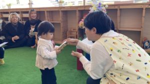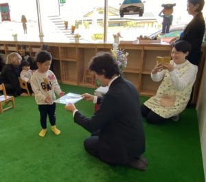 在園児の子どもたちにも理事長先生から修了証書とクッキーが渡されました(*^^*)