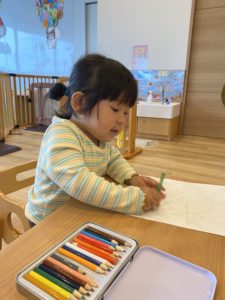 色鉛筆でお絵描きする子もいました。