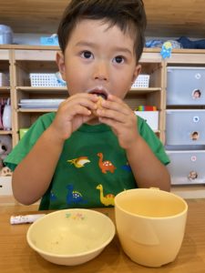 おいしいおやつを前にすると子どもたちも自然と笑顔になりますね!